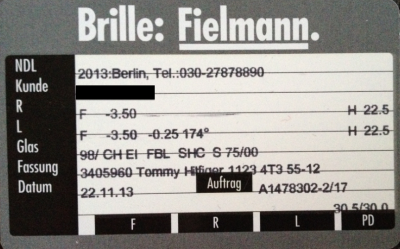 Vielleicht habt ihr einen Tipp, woran es liegen könnte? ...Ich bin jetzt drauf und dran, die Brille doch zurückzugeben und sie mir bei meinem alten Optiker zu bestellen. Allerdings würde er die ja sicher genauso machen...es ist ja auch der gleiche Glashersteller. Zumindest sagt das Fielmann. Ich füge mal meinen aktuellen Brillenpass an, vielleicht kann jemand den Glashersteller-Code entschlüsseln?